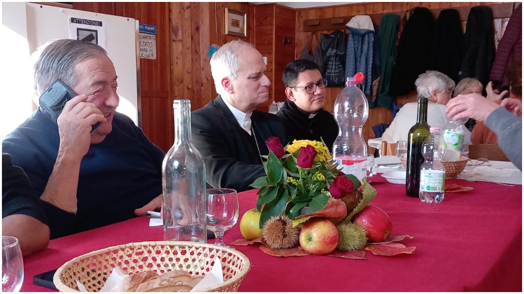Pranzo – Dopo la messa, il cardinale si trattenne a pranzo con la comunità presso la Società Operaia Cattolica di Manesseno (nella foto in basso). “Non potevamo non offrirgli il nostro celebre salame”, aggiunge Sanna. Un pezzo di Liguria che il Santo Padre potrà portare nella sua memoria.