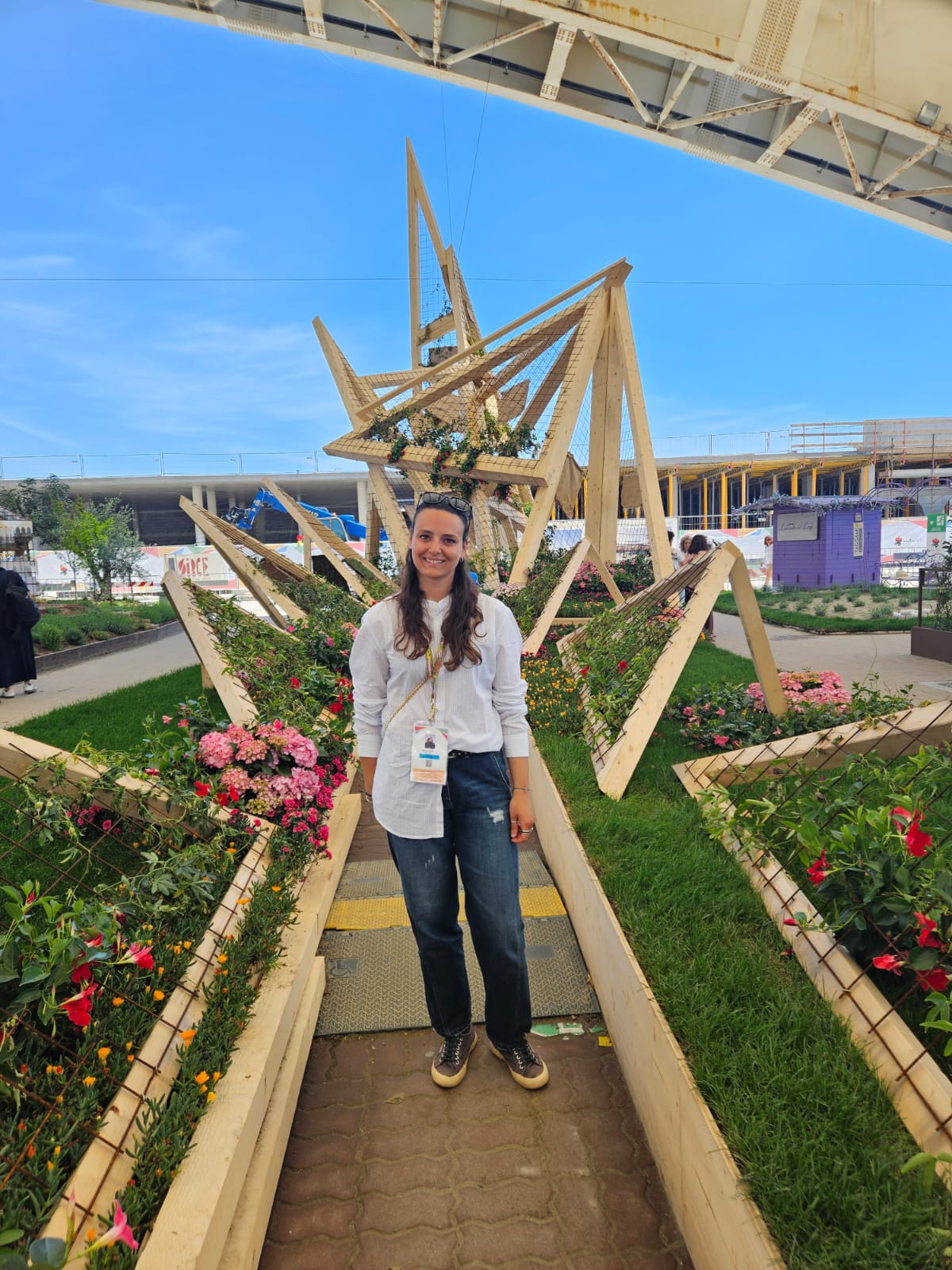 Sara Santambrogio, appena 28 anni, Project manager per Urges-Gruppo Valagussa, ha seguito personalmente diversi cantieri, in particolare alcuni allestimenti fortemente simbolici della manifestazione, come il Palasport, il mirador, le isole galleggianti e la progettazione e costruzione dei padiglioni della Regione Liguria e di Confagricoltura con il caratteristico nido. Svolge con estrema precisione un delicato lavoro di coordinamento di progettisti, professionisti e maestranze varie. In tutto la gestione di una ventina di persone al giorno, ai quali si sommano i compiti di logistica e trasporti con il rigoroso rispetto delle tempistiche. Si ritiene soddisfatta del lavoro svolto – si augura che anche in cantiere la presenza femminile non sia più sentita come una eccezione”.