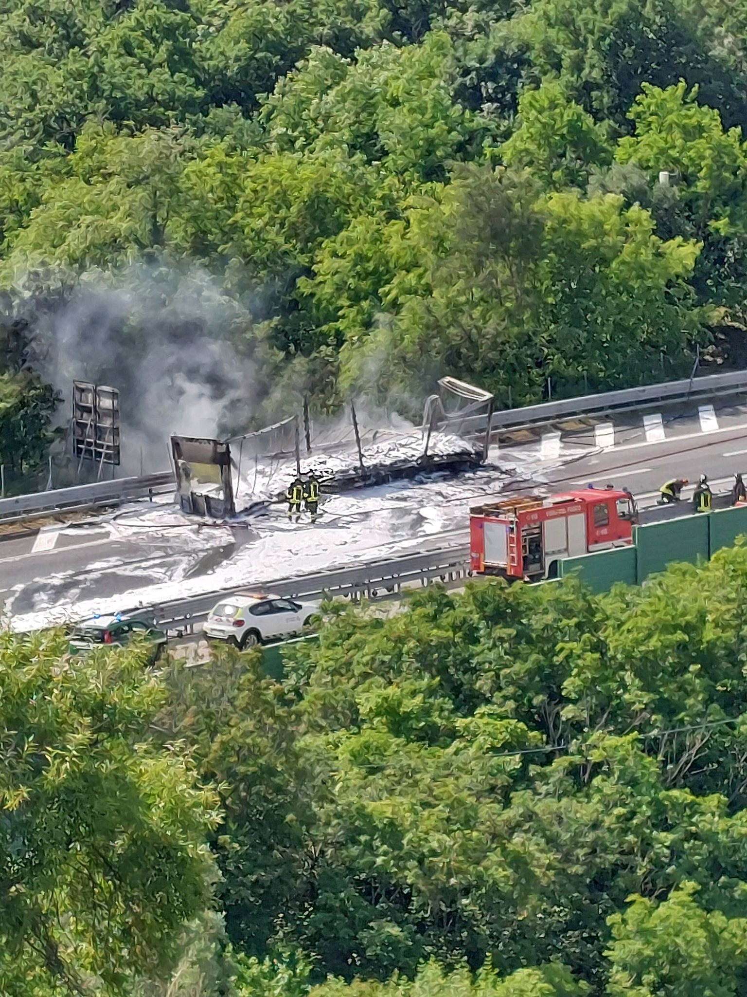 Alle ore 11 - il traffico è bloccato e si registrano 2 km di coda per un camion in fiamme al km 37.6.