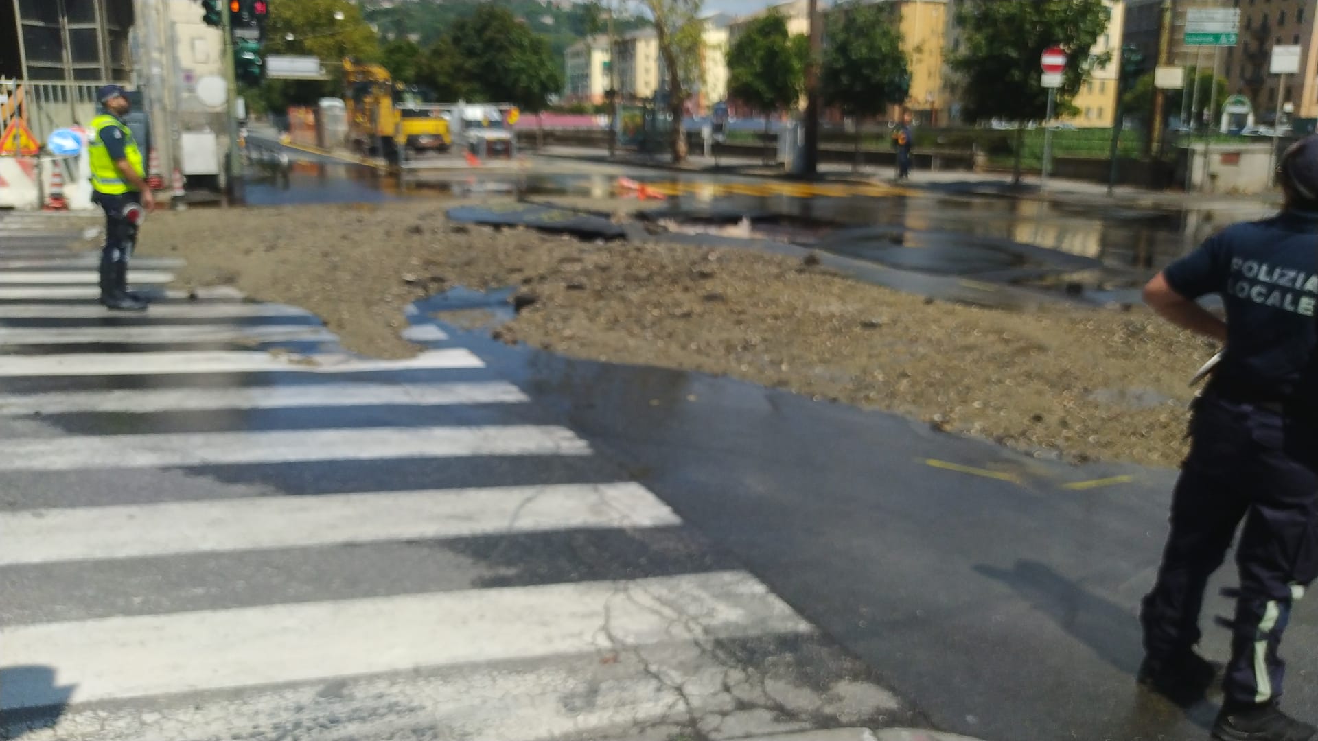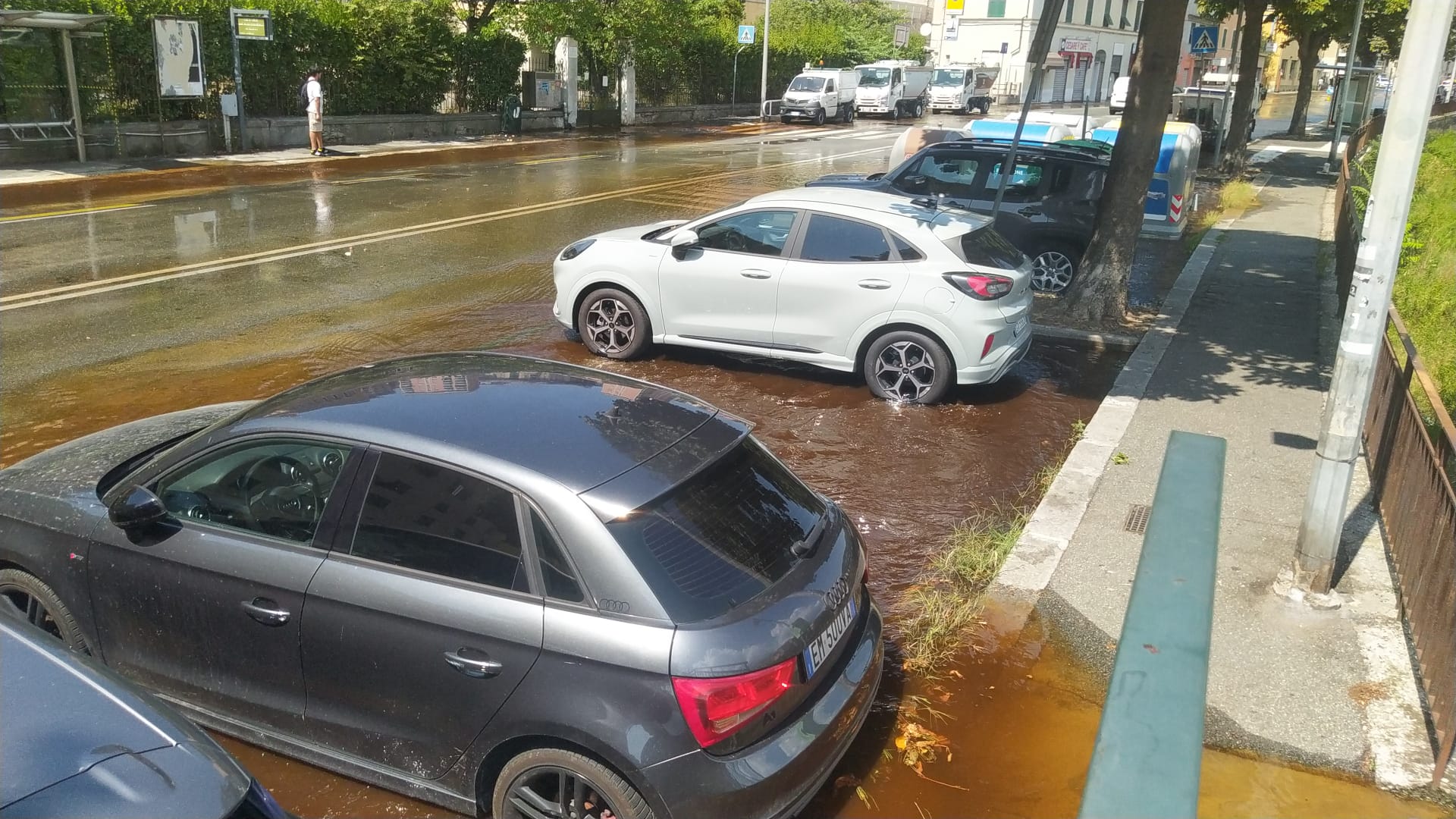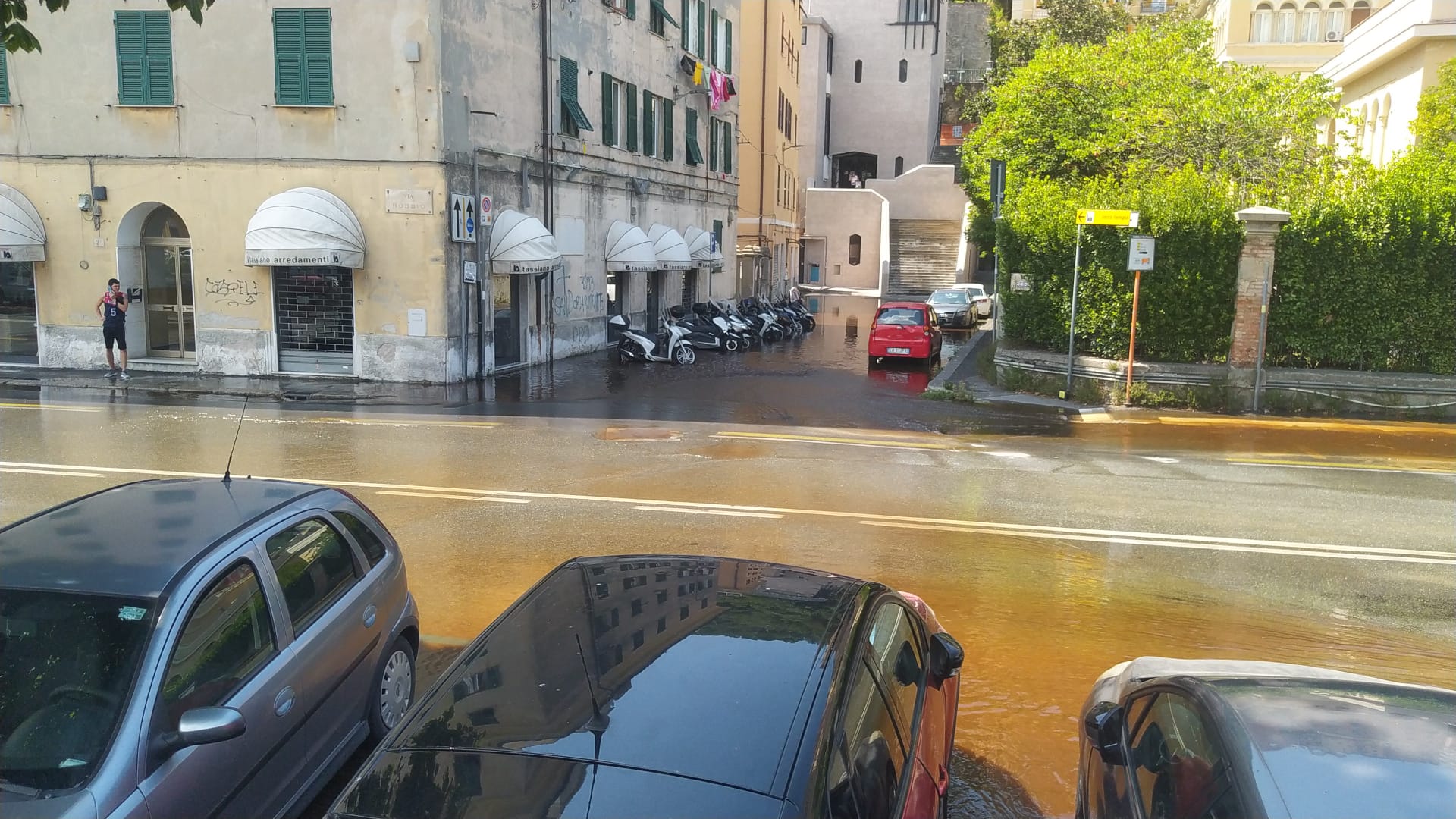 Genova, disagi in zona Staglieno: strada allagata tra via Bobbio e via Montaldo, incrocio chiuso al traffico e carenze nella rete idrica