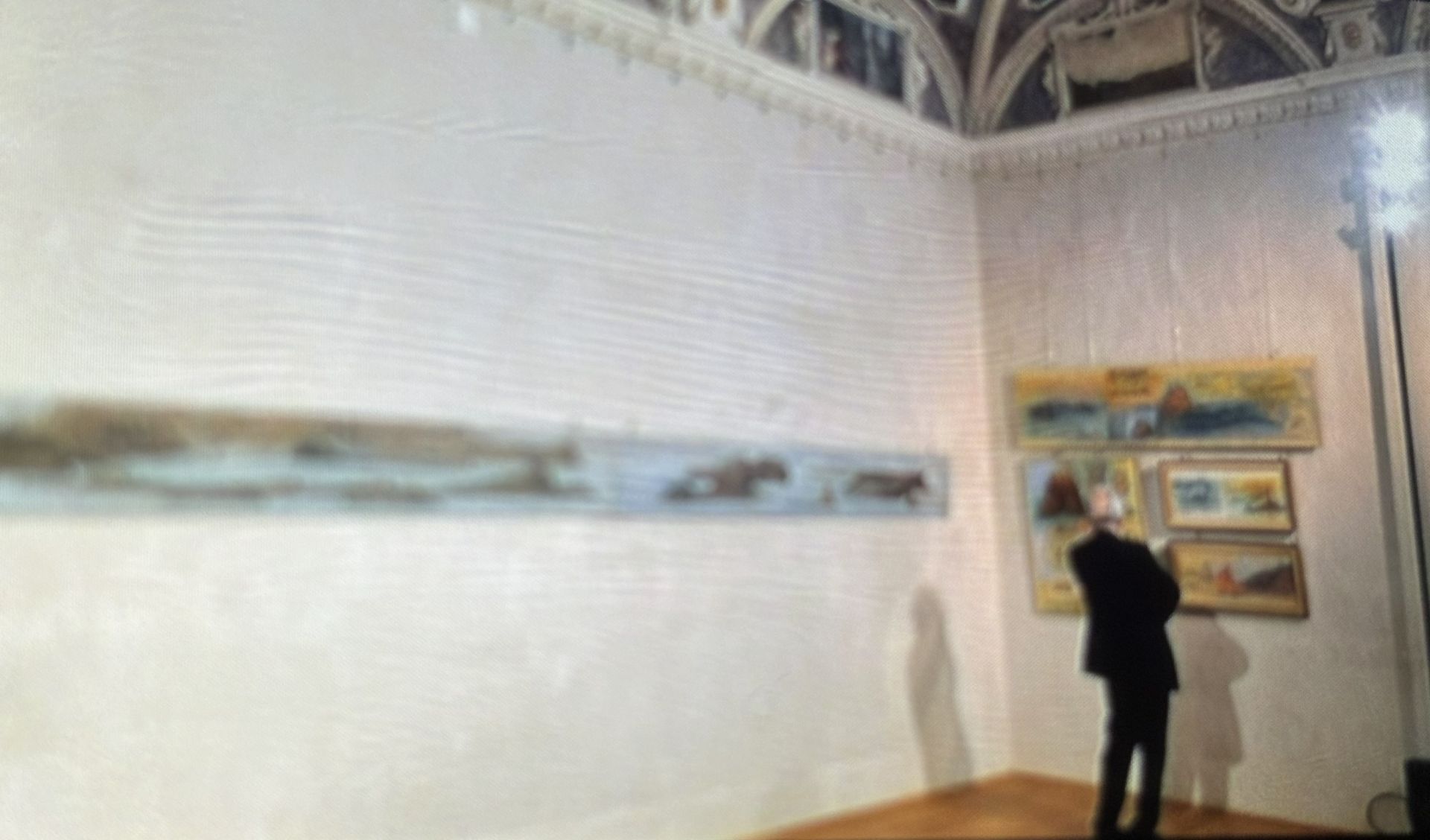 L’allestimento - Accoglie il visitatore con una composizione ideale di opere accostate in modo inedito, dove le “scritture” urbane si dissolvono in paesaggi immaginati, infiniti, per poi ritornare a due città-cardine: Roma e Genova, luoghi reali e simbolici della memoria.