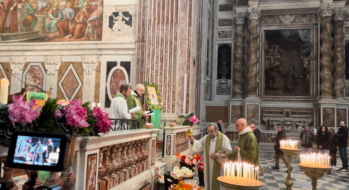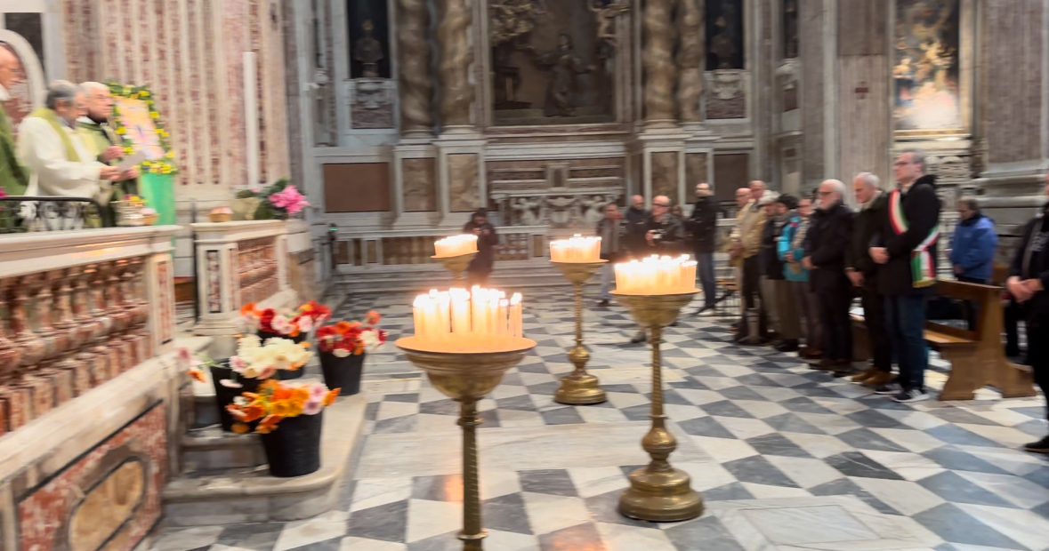 Presente in chiesa il sindaco facente funzioni Pietro Piciocchi che ha portato a casa uno dei fiori e delle immaginette benedette, che sono state distribuite alla fine della messa a tutti i partecipanti.