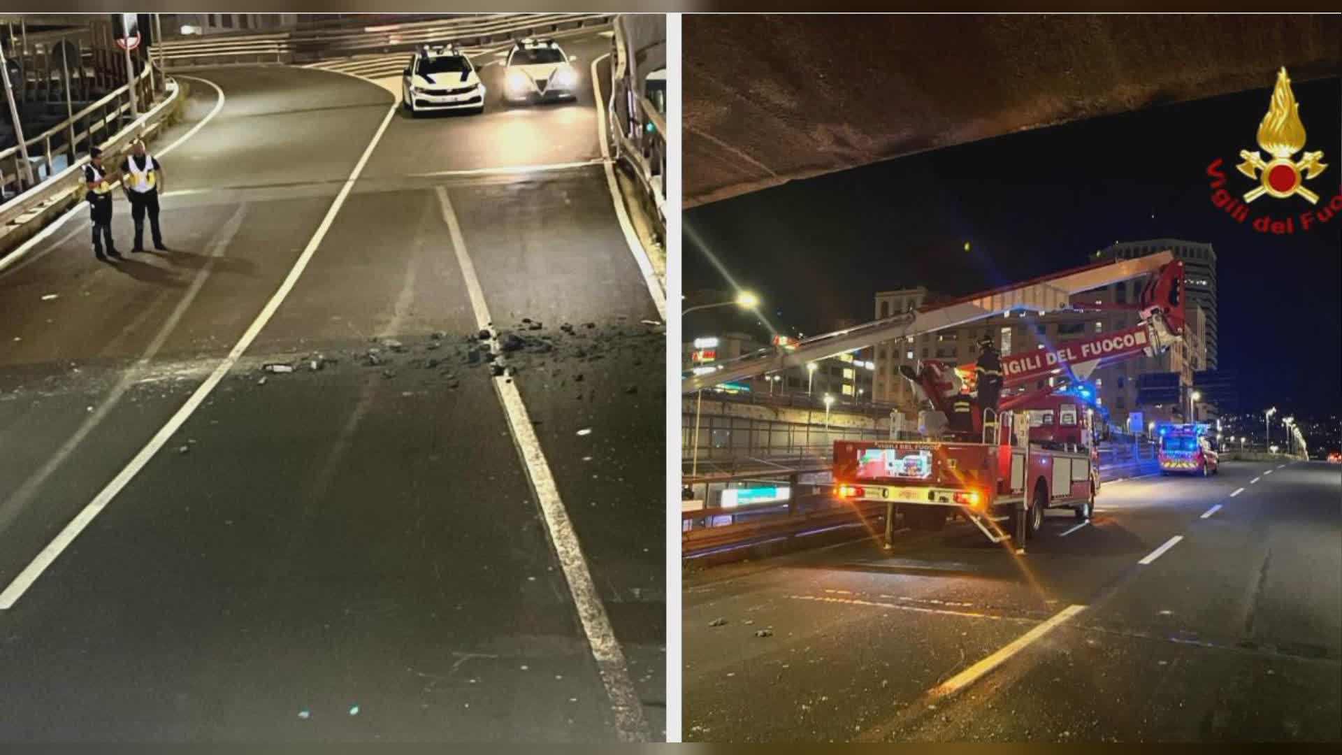 Genova: cadono pezzi di intonaco sulla Sopraelevata dall'elicoidale, viabilità modificata. Piovono calcinacci in via Fieschi, tratto interrotto