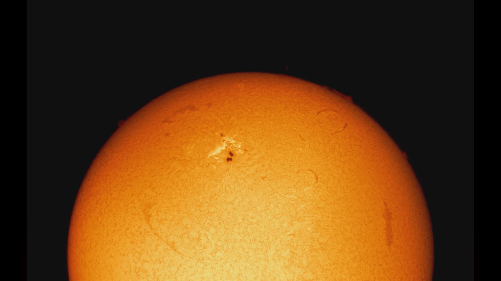 Credits - L'immagine è stata ottenuta da Marina Costa dell'Osservatorio Astronomico del Righi tramite un telescopio solare Lunt LS 60 T - H alpha (appositamente realizzato per l'osservazione della nostra stella) con camera ASi ZWO 664 MC su montatura Avalon Linear Fast Reverse