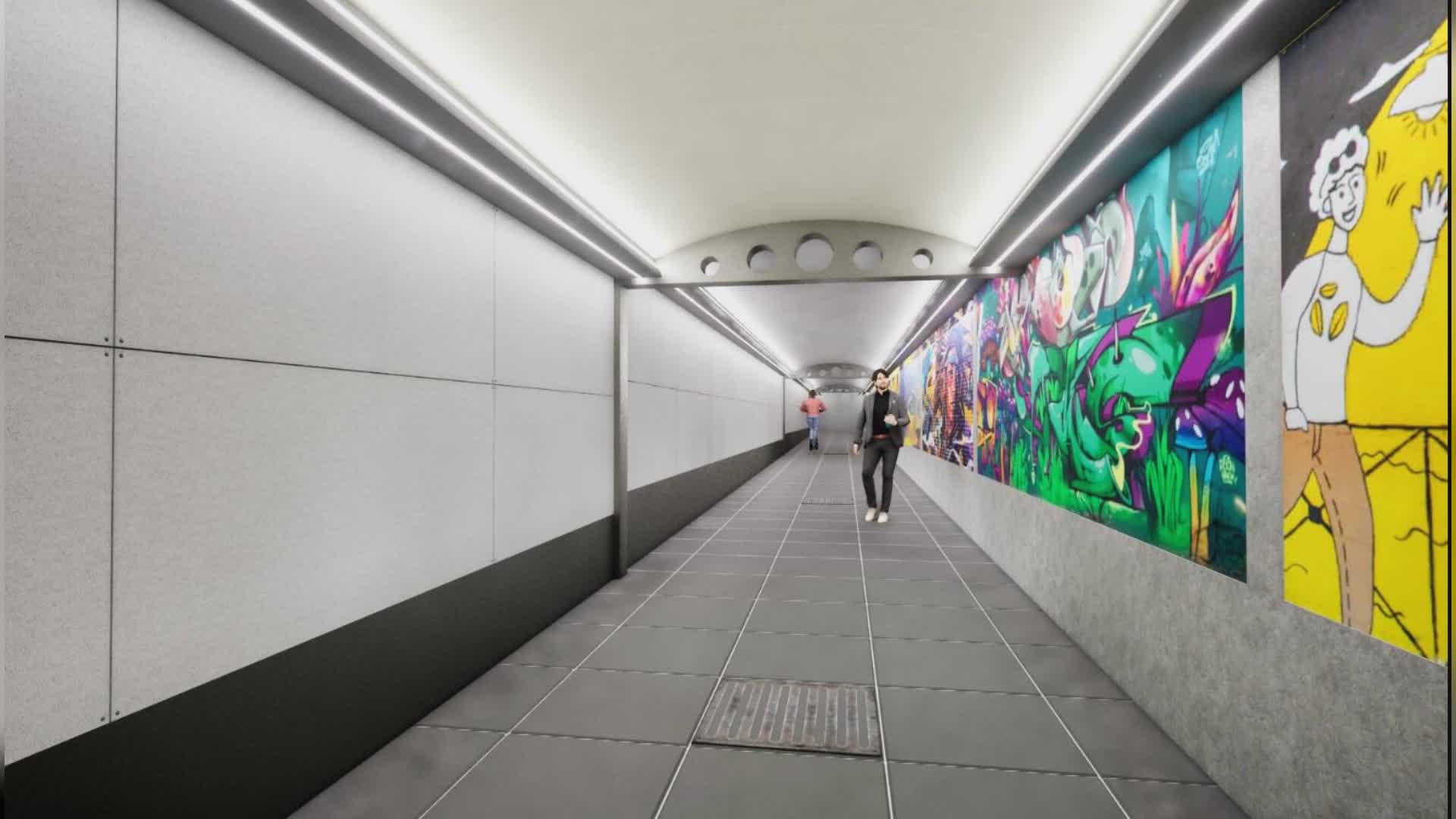 I lavori (nella foto, un'elaborazione grafica del sottopasso ultimato) consentono anche la riqualificazione dei due fronti di accesso del sottopasso, lato Piazza Verdi e Piazza Raggi, il rifacimento della pavimentazione e della situazione idraulica, una nuova controsoffittatura, un nuovo impianto di illuminazione e un miglioramento di tutte le finiture. È previsto anche il mantenimento degli spazi di libera espressione culturale (murales).