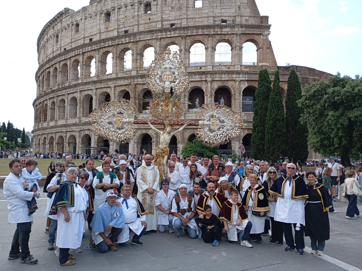Benedizione davanti al Colosseo - Il nuovo fiocco del Cristo è stato benedetto in un luogo altrettanto simbolico: di fronte al Colosseo. Un momento intenso e carico di significato per tutti i partecipanti, che ha suggellato l’esperienza con un’emozione indimenticabile.