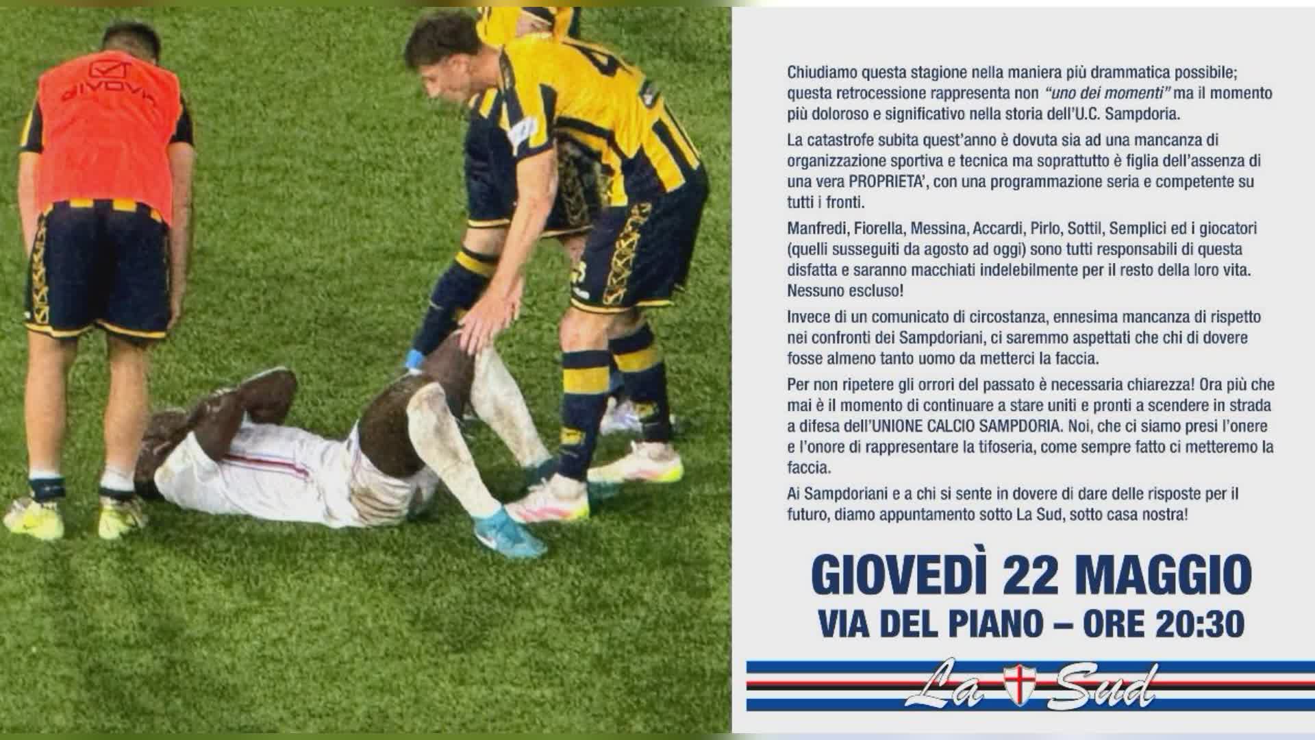 "Chiudiamo questa stagione nella maniera più drammatica possibile; questa retrocessione rappresenta non “uno dei momenti” ma il momento più doloroso e significativo nella storia dell’U.C. Sampdoria. La catastrofe subita quest’anno è dovuta sia ad una mancanza di organizzazione sportiva e tecnica ma soprattutto è figlia dell’assenza di una vera PROPRIETA’, con una programmazione seria e competente su tutti i fronti. Manfredi, Fiorella, Messina, Accardi, Pirlo, Sottil, Semplici ed i giocatori (quelli susseguiti da agosto ad oggi) sono tutti responsabili di questa disfatta e saranno macchiati indelebilmente per il resto della loro vita. Nessuno escluso! Invece di un comunicato di circostanza, ennesima mancanza di rispetto nei confronti dei Sampdoriani, ci saremmo aspettati che chi di dovere fosse almeno tanto uomo da metterci la faccia. Per non ripetere gli orrori del passato è necessaria chiarezza!" recita un comunicato.