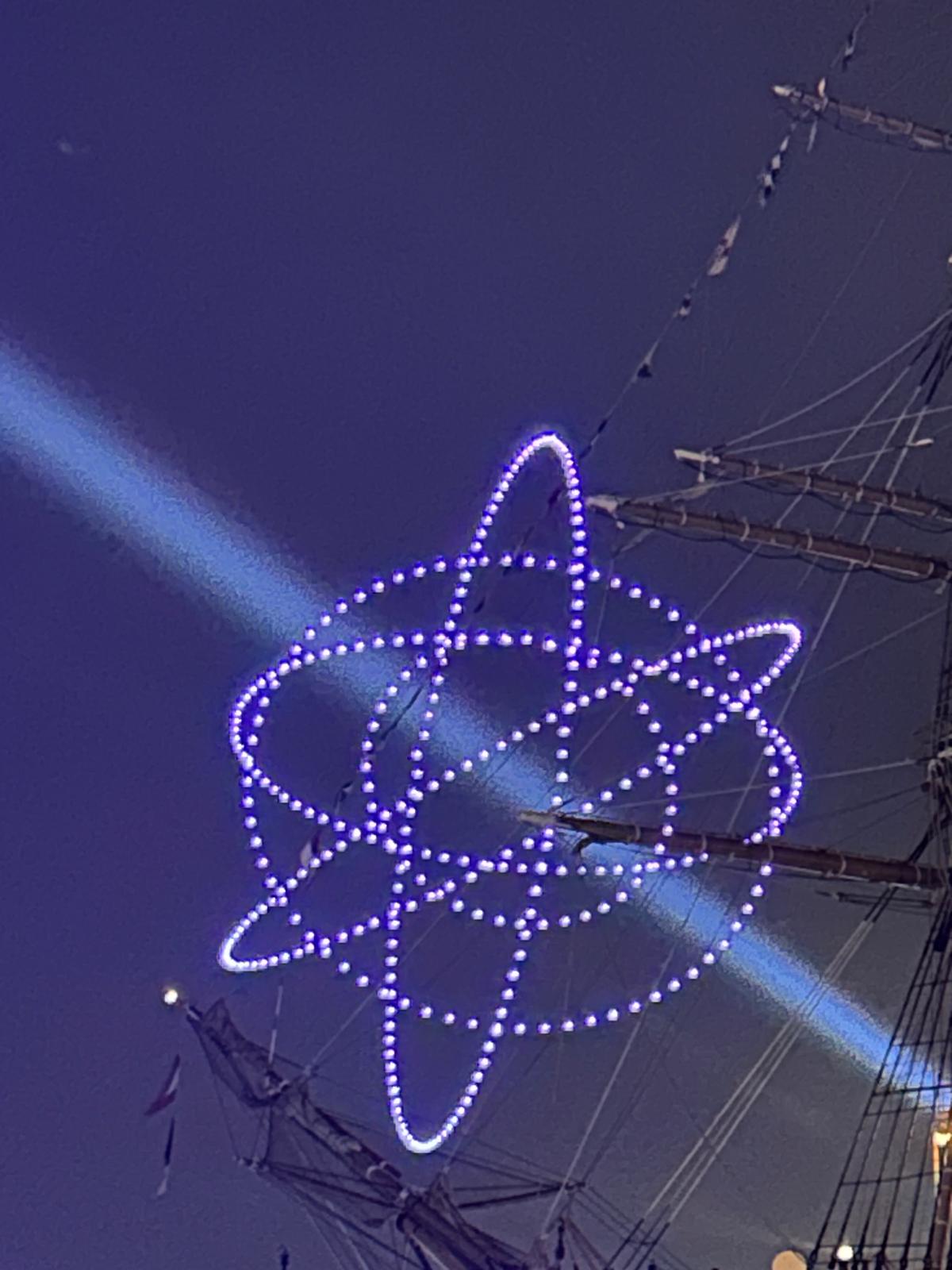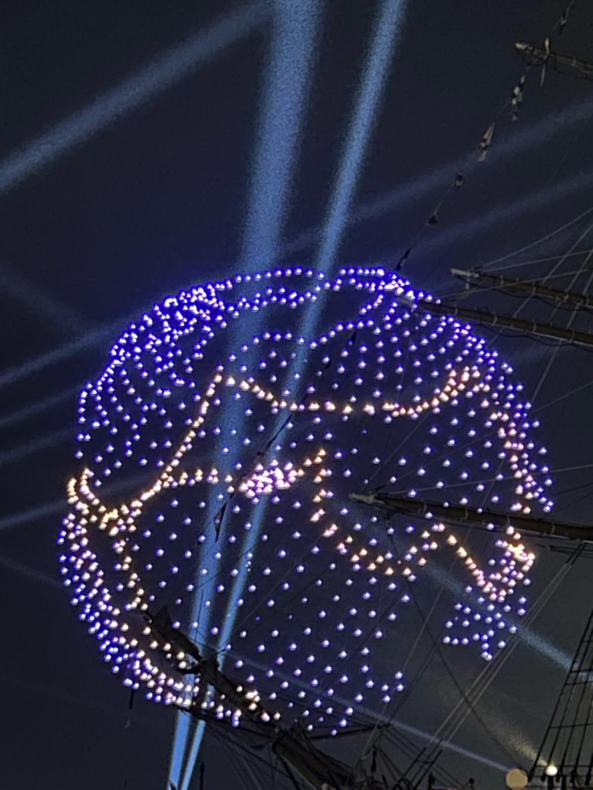 Drone show – Il momento clou della serata è iniziato alle 22:20, quando centinaia di droni hanno disegnato nel cielo immagini luminose ispirate al mondo marinaro e alla Vespucci. Le coreografie, ampie oltre duecento metri, si sono riflesse sulle acque del porto, suscitando l’ammirazione del pubblico assiepato lungo le banchine.