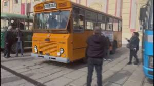 Genova, il passato e il futuro del trasporto pubblico in piazza De Ferrari: esposti tre autobus storici e uno nuovo elettrico