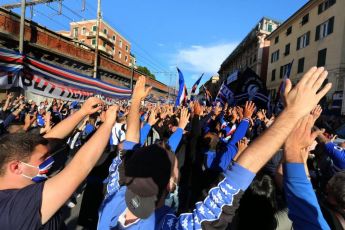 Genova, serata in blu, la festa in via Roma