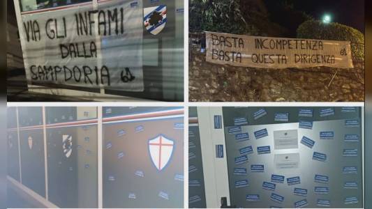 Sampdoria, blitz notturno dei tifosi contro la sede: adesivi e striscioni di contestazione